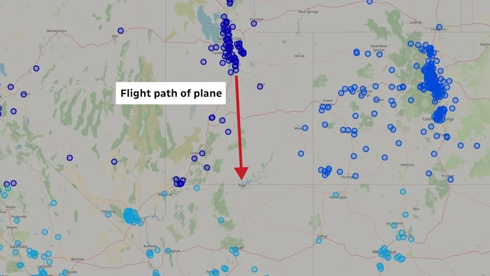 The data for this flight, which is publicly available on ADS-B Exchange, does show a loss of signal about 30 minutes into the flight but as flight tracking experts like Steffan Watkins pointed out in an X post, there is nothing suspicious about this loss of signal. It’s quite common for a plane to lose signal if there are mountains and valleys, he said, as is the case in Utah and Arizona. In this case, the plane was heading to the Page airport in Arizona, where Watkins notes there are very few radio receivers to collect data on the plane. Essentially, it’s a “reception dead zone” for the ADS-B data.