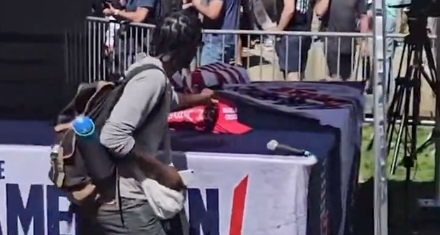 What was supposed to be an event turned into a crime scene. A video shared on social media shortly after left people furious, as one individual was seen jumping over the perimeter to take some of the baseball caps that were still lying on a table next to where Kirk was shot.