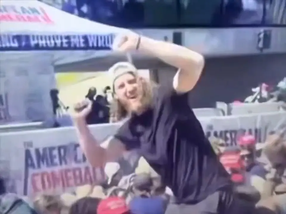 “When I heard a sharp crack at first I thought it might have been fireworks or a disruptive prank,” the man says, appearing to be wearing the same tan-colored backwards cap as the man apparently celebrating in the video.