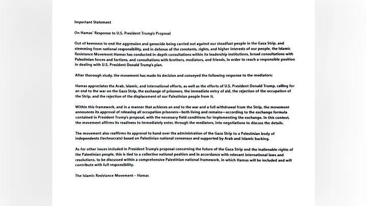 The broader issues in Trump’s Gaza proposal, including the future of Gaza and Palestinian rights, will be addressed within a unified Palestinian national framework, with Hamas participating responsibly in the process, according to the statement.