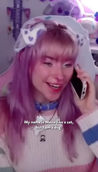Sleeping in a crate, pooping outdoors and being rewarded with doggy biscuits for good behavior seem like any pup’s fantasy. But, instead, streamer Meow Dalyn is the one happily assuming the carefree life of a canine.