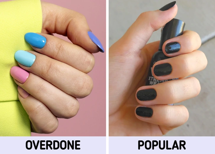 If you want to save time on nail extensions, short nails are in for 2025. Only, refrain from multicolored or bright matte colors, and opt for dark colors like burgundy, black and shades of maroon and blue instead.