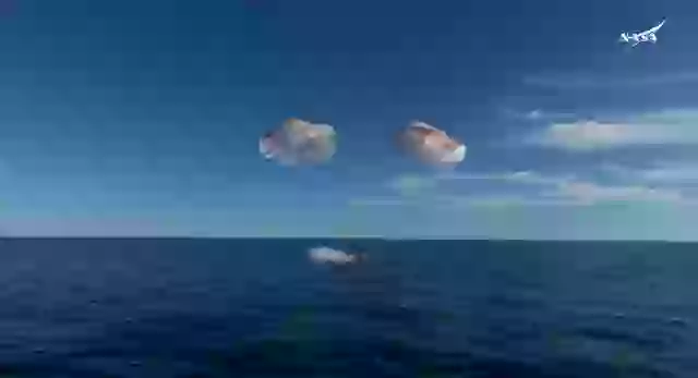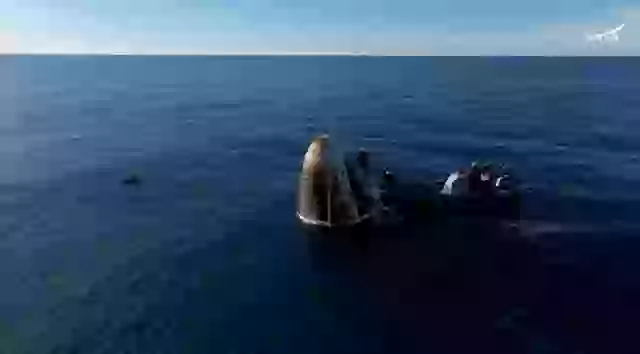 The historic moment, live streamed by NASA, shows how the teams used specialist equipment to recover the spacecraft, which included jetting off the saltwater from the ocean as part of safety protocol.