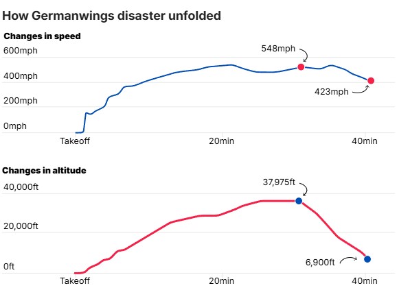 It climbed to about 38,000ft (11,600m) in its ascent over the Mediterranean and into France before making its final routine contact with ATC around 9:30am.