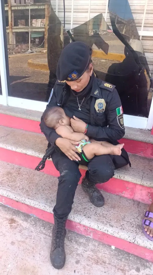 Military personnel and volunteers spent several days removing debris along Acapulco’s area. In such horrible conditions, the police officer, feeding the starving baby, seemed an oasis of hope for everyone.