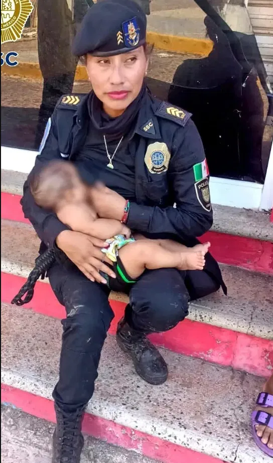 The woman, who accompanied the baby, happily agreed to the police officer’s suggestion. As soon as the woman placed the almost 4-month-old baby on Arizbeth’s body, the baby stopped crying and was satisfied by the body contact and the food.