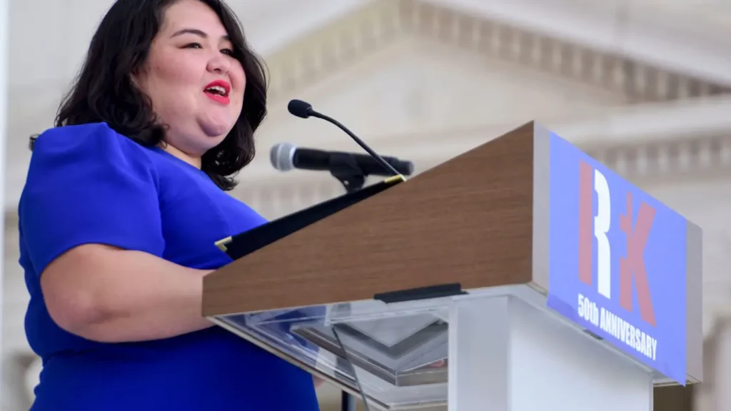 Her comments were made in front of tens of thousands of protesters who attended the rally in the nation’s capital, one of more than 1,000 protests held around the country on Saturday.