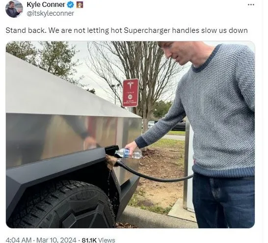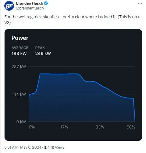 The Tesla owner shared a tip for tricking the system in hot conditions. By simply using wet towels on Supercharger handles, some drivers claim to achieve faster charging speeds.