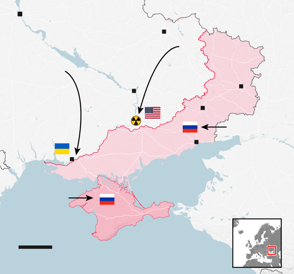 Ukraine would regain unhindered access to the mouth of the Dnieper river and the second area of Kherson province would also require Russian withdrawal.