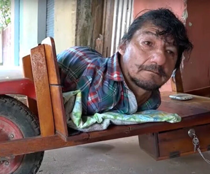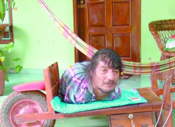 Across his life, Pablo Acuña has relied on a wheelbarrow as his mode of transportation; his daughter even shares that he slumbers within it: “His wheelbarrow is practically his dwelling, serving as his substitute limbs.”