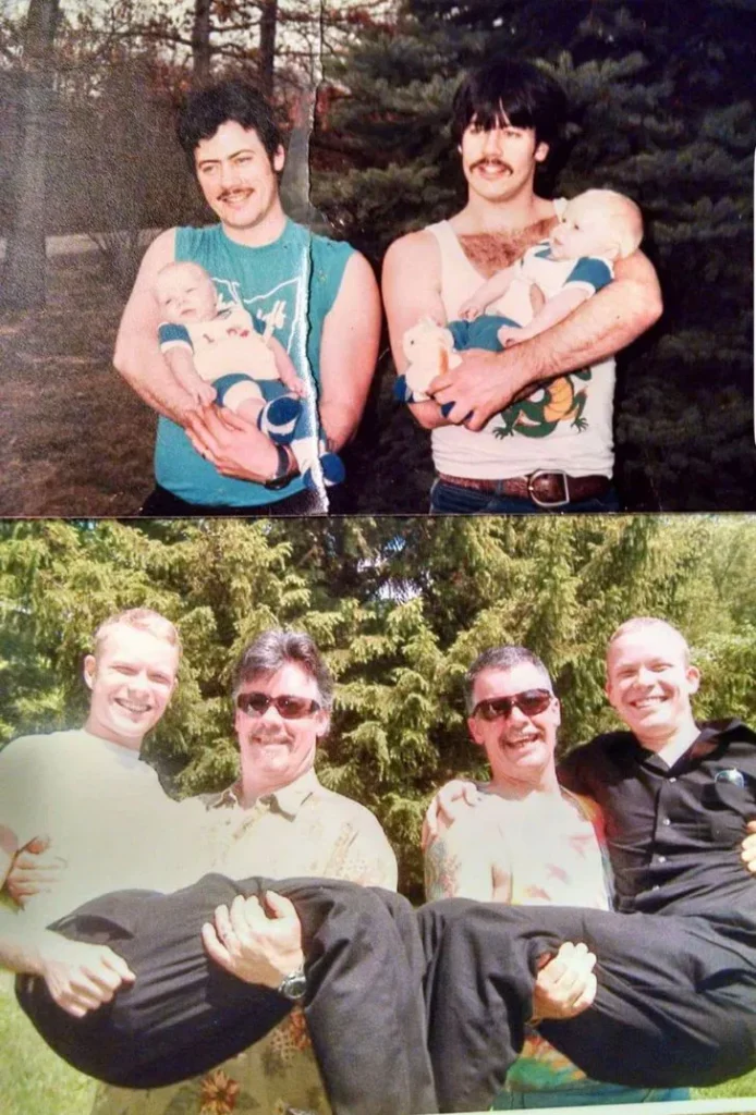 “Twins holding twins in 1987. The same twins holding the same twins in 2017.”