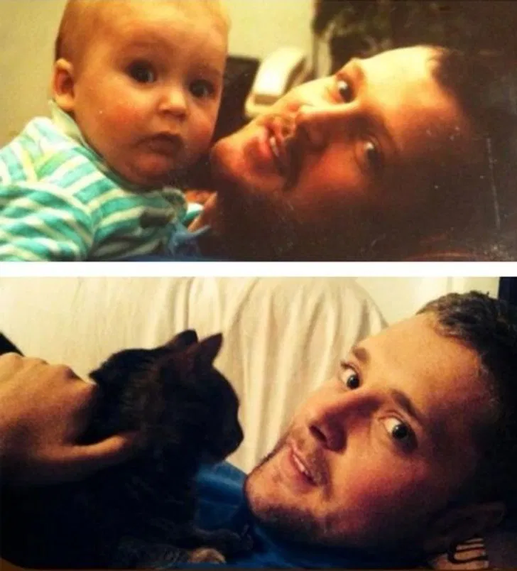 “My dad and I in 1991, and my cat and I in 2013. Find 10 differences!”