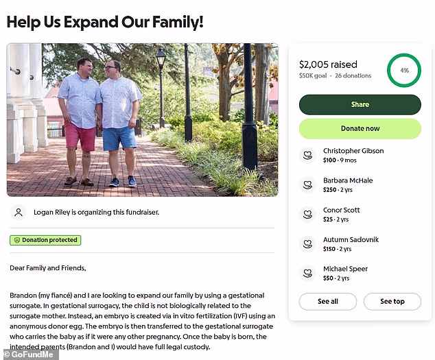 The couple had launched a fundraiser on GoFundMe in 2023 to raise money to help them afford a gestational surrogate. In an update, they announced that they had found a surrogate ‘after three long years of searching’ when a family friend reached out.
